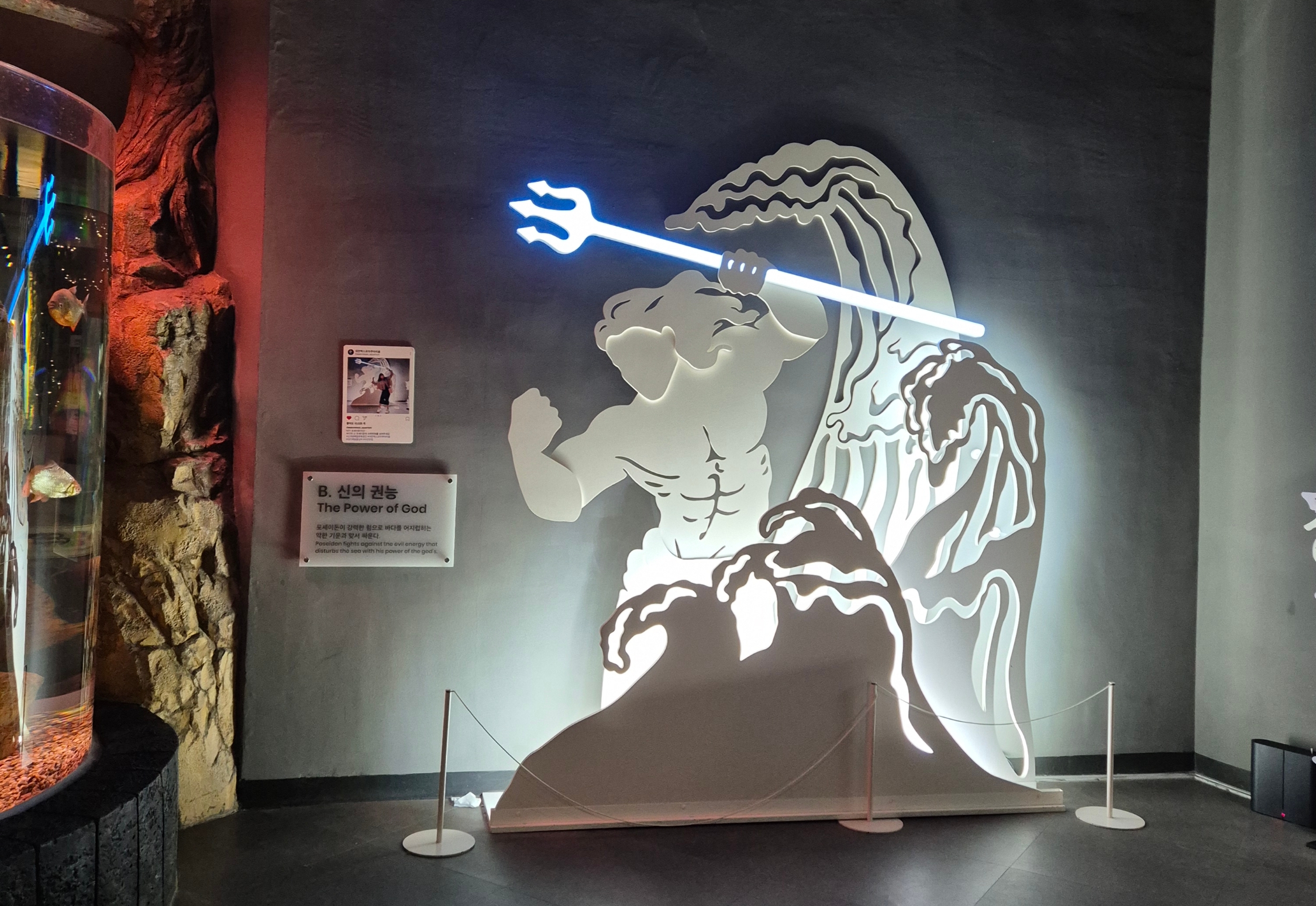 메인수조에는 이렇게 그리스신화의 인물들이 만들어져 있는데 그래서 그런지 수조가 더 웅장하고 멋져 보였어요.